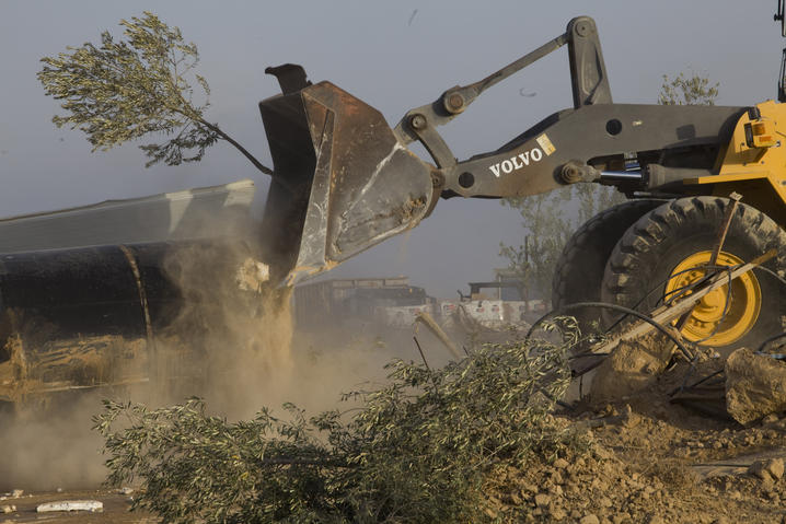 השופלים ממשיכים לעבוד. רוב הכפר כבר הרוס. תרנגולות מסתובבות מבולבלות בין ההריסות וגלגלי הטרקטורים, ואני מקווה שלא יקרה איזה אסון ותרנגולת תידרס. הלולים שלהן נהרסו, ובכלל, כל המרחב נראה אחרת לגמרי. שופל נוסע לאחור כמה מטרים, משפיל את הכף, נוסע שוב קדימה וגורף אנטנת לווין ושני עצי זית צעירים. עבודה יסודית כבר אמרנו?