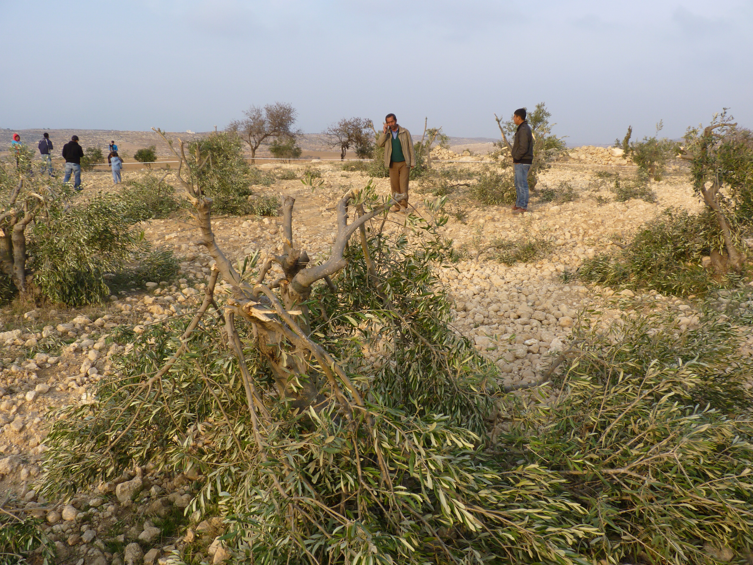 עצי-זית של פלסטינים בשויקה שנכרתו בידי מתנחלים ב-21 בגצמבר 2011