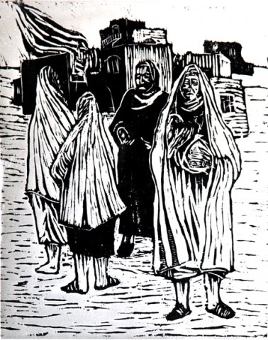 במחוזות הפליטות האלה, בצילם של פחד המוות, השכול, חולשת הגוף ואובדן הכבוד ממלא עבד הילד את תרמילו שאותו ירוקן לנגד עינינו, כעבור שנים, ברישום, באיור, בציור ובפיסול. מוטיבים וחומרים בעבודותיו מקורם באותם ימים: במראה האולמות הרחבים של אורוות הסוסים במחנה הפליטים, בהם יריעות יוטה שימשו קירות של "הדירה המשפחתית", בזיכרון של חלונות השַערִיַה המסורגים בצפיפות דרכם הציץ הילד ממעונו הזמני במסגד בדמשק לרחוב או במראה בטנן העגולה והתפוחה של הנשים בחמאם בדמשק שם נהג לבקר עם אמו. מתוך חווית הפליטות הזו נולד עבד עבדי האמן, "צייר הכפות המשולשות" (רַסַאם אל-קִבַּאבּ אל-מֻתַ'לתַ'ה), כפי שהוכתר על ידי המשורר משה ברזילי....