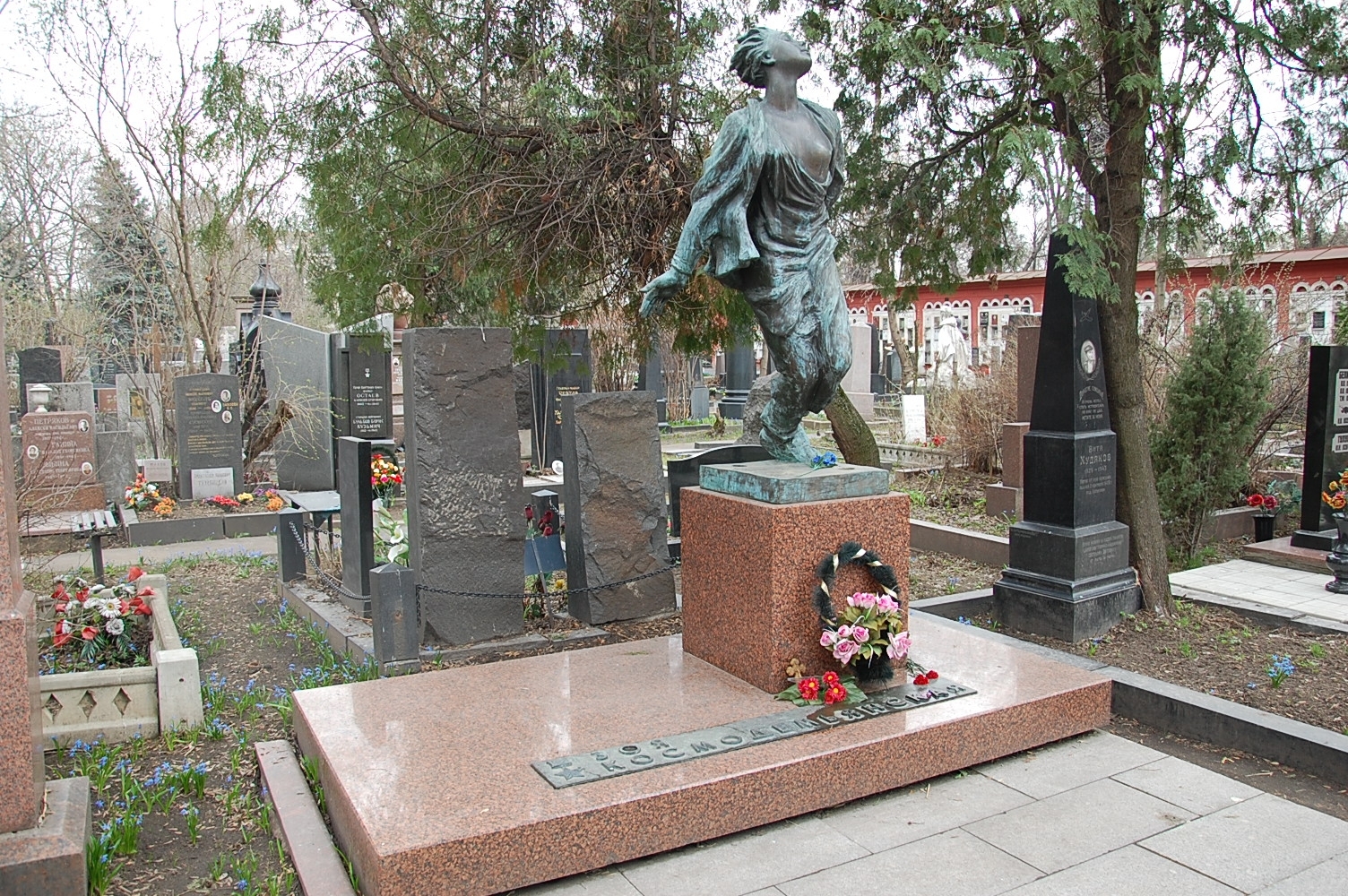 אם בית העלמין הפריזאי היפיפיה "פר לאשז" (האב לאשז, שהיה בעל האדמות) הוא פנתיאון לספרות והאמנות הצרפתית הבורגנית הרי כאן, בליבה של מוסקבה, אין אחוזות קבר אלא פסלים על כל קבר.