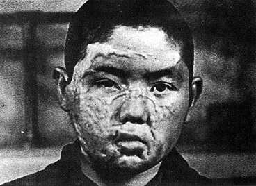 אחרי שקפצתי מעל השברים וההריסות, רצתי כמו מטורפת לעבר הגשר. איזה מראה ! המון אנשים התרוצץ במים מתחת לגשר. כולם – אלה היו גברים או נשים ? – כולם, ללא יוצא מהכלל, פניהם אפורים ונפוחים, שיערותיהם סומרות, נופפו בידיהם לשמיים, הוציאו קולות גניחה חנוקים, הם דחפו זה את זה מי ישליך את עצמו מהר יותר למים. חשוף לקרינה החזקה, ה-***mompé שלבשתי התפורר. סבלתי מכאבים, הרגשתי שפשטו את עורי. ברגע שעמדתי לקפוץ למים, נזכרתי שאינני יודעת לשחות. כשחזרתי לגשר, נתקלתי בתלמידת תיכון אומללה שנעה ונדה כמו סהרורית, עודדתי אותה במילים "מהר ! מהר !" תוך כדי ריצה לעבר הגדה השנייה : בהביטי מעבר לכתפי נגלה לעיני ים של אש שהשתרע מרובע Takeyacho עד לרובע Hatchobori. עד אז סברתי שהפצצה פגעה רק בסביבה...